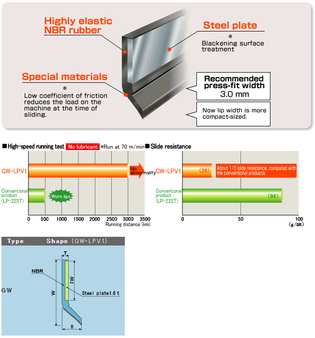 Over the years, machine tools and industrial machines have become multifunctional and faster, and in order to improve the performance of the sliding portion seals used on steel plate covers, we have developed special wipers called lip seals. The ability of these seals to stick close to the sliding bed is second to none, and they are also extremely effective at scraping.